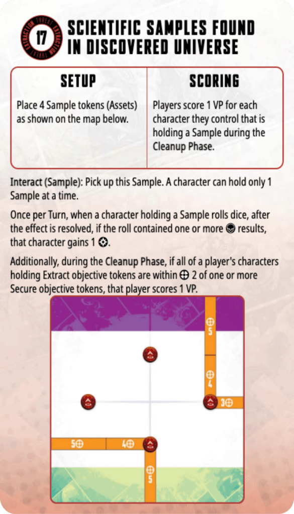 Scientific Samples Found in Discovered Universe has a lot going for it. Not only is it D-shaped, but it is also 17-threat, one of the Servants of the Apocalypse’s strongest threats. However, it is not without its draw backs. The power gain from holding an extract does counteract some of the power economy difficulties that Servants of the Apocalypse squads can be trying to inflict. Regardless, it is often the first extract that Apocalypse players select for their roster.